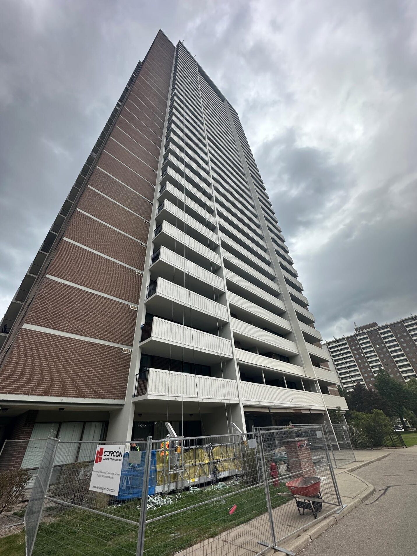 Corcon Construction successfully delivered a large-scale concrete repair and full building envelope restoration project in North York, involving a 34-storey residential high-rise and extensive exterior rehabilitation.
