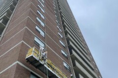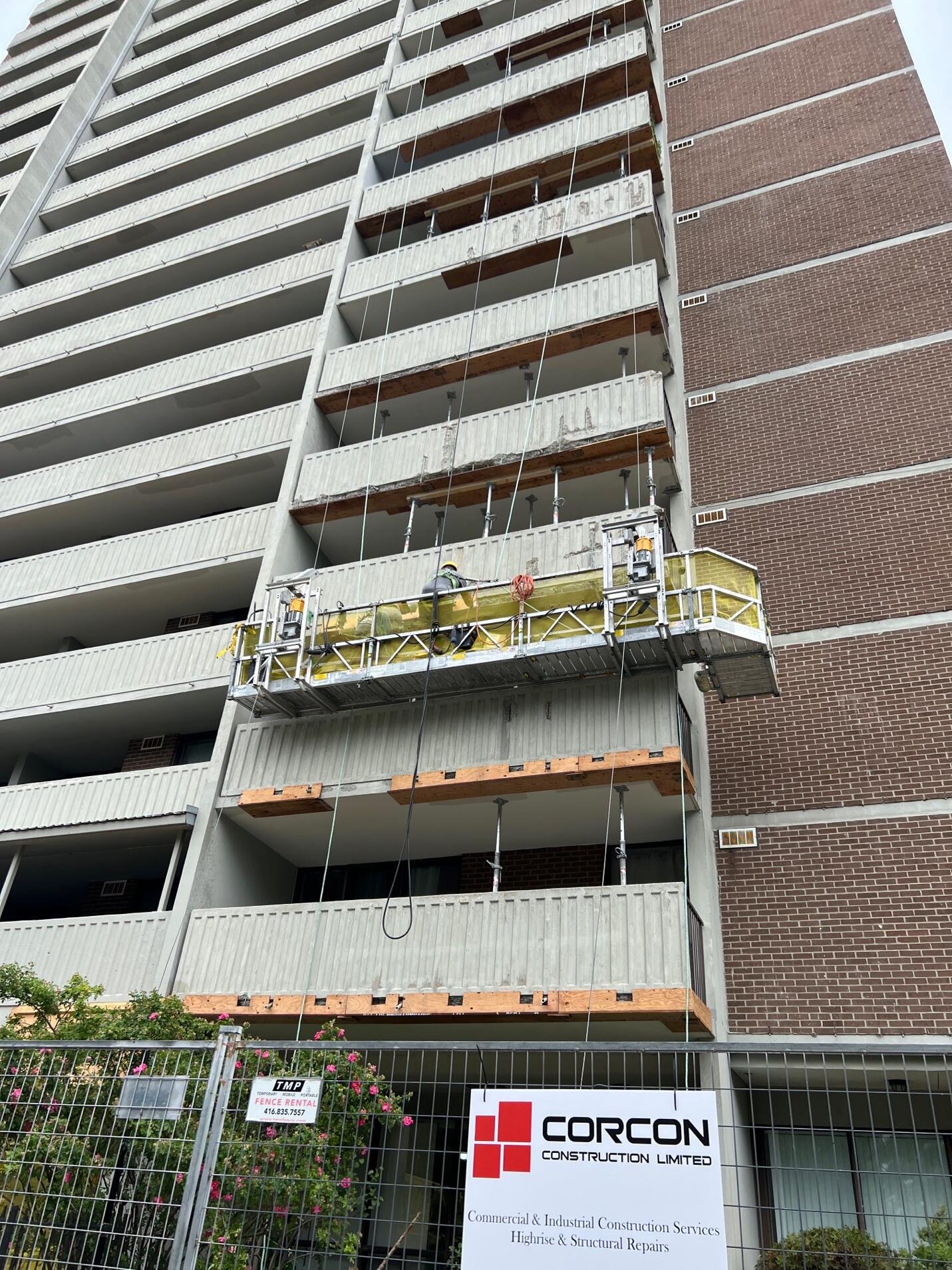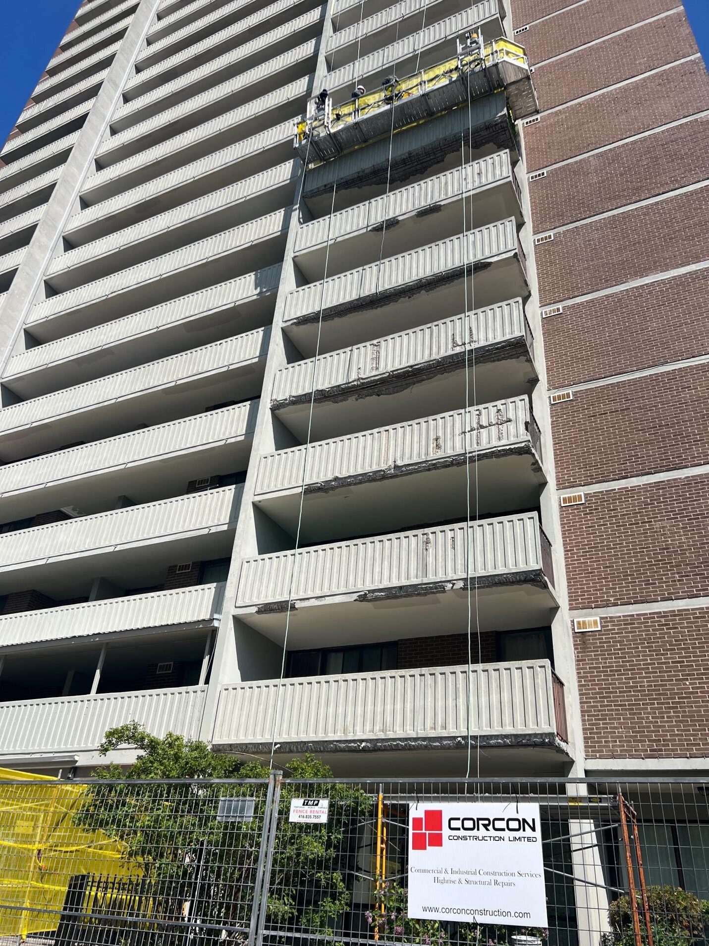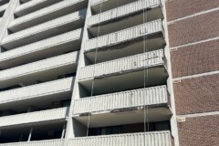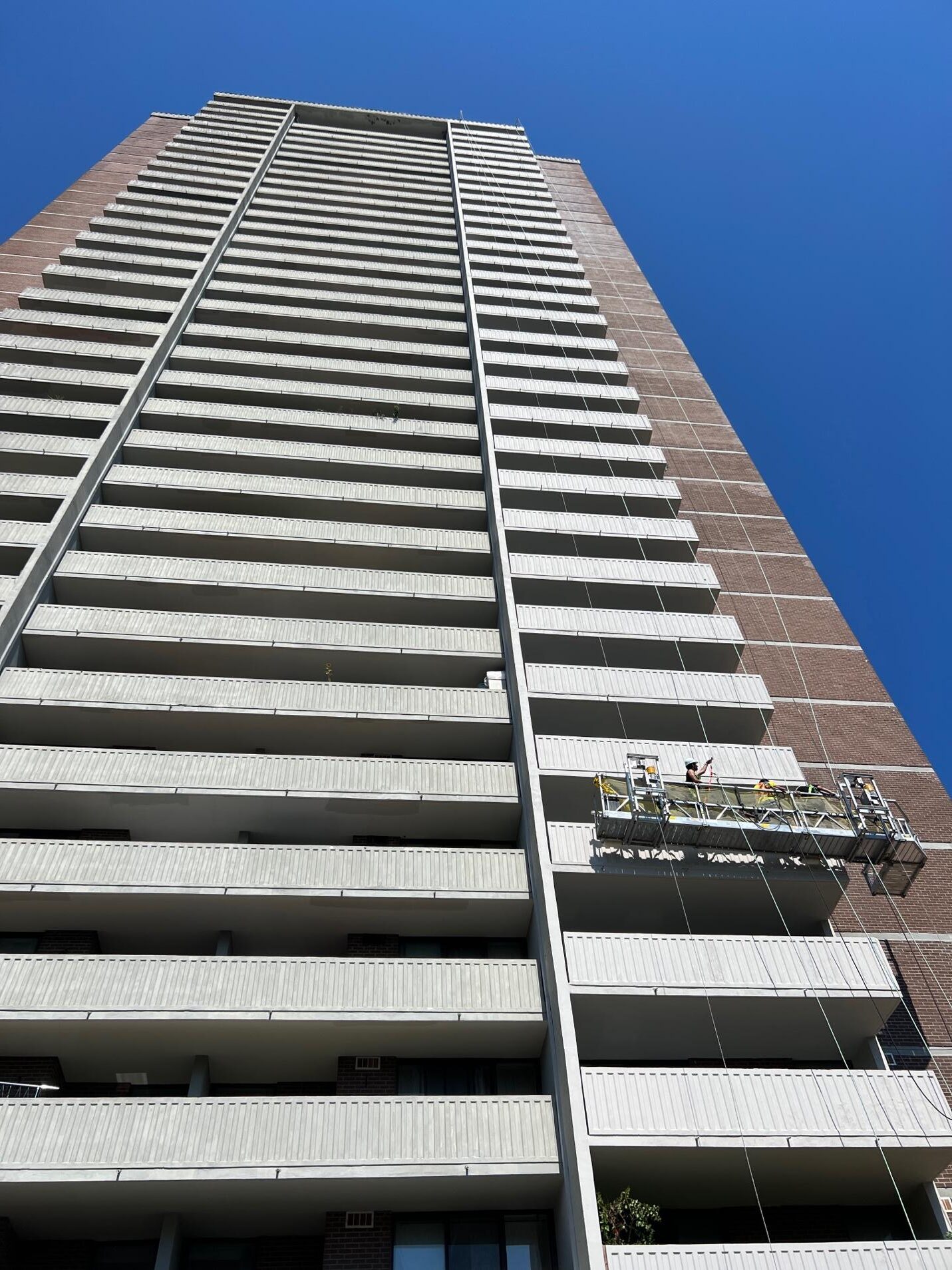 Utilizing engineered swing stage access systems, Corcon crews safely operated across the entire structure, performing high-rise balcony repairs and restoration with precision, efficiency, and strict adherence to safety protocols.