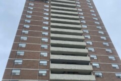 This high-rise concrete restoration project required comprehensive upgrades to deteriorated balcony systems across all elevations. Corcon completed full concrete balcony slab repairs, structural restoration of slab edges, and concrete railing repairs, addressing advanced deterioration, delamination, and long-term exposure damage throughout the building.