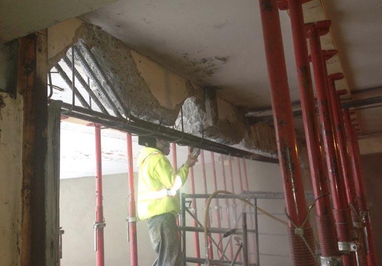 Working in close coordination with consulting engineers, Corcon completed extensive through-slab concrete repairs, localized structural concrete restoration, and full underside (soffit) rehabilitation, while also undertaking the removal and replacement of critical load-bearing components, including deteriorated ledge beams and reinforced concrete columns. The project further included comprehensive drainage system upgrades, such as full drain replacements and trench drain system installations, along with exterior exit concrete repairs to restore safe and functional access points.