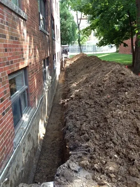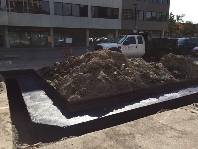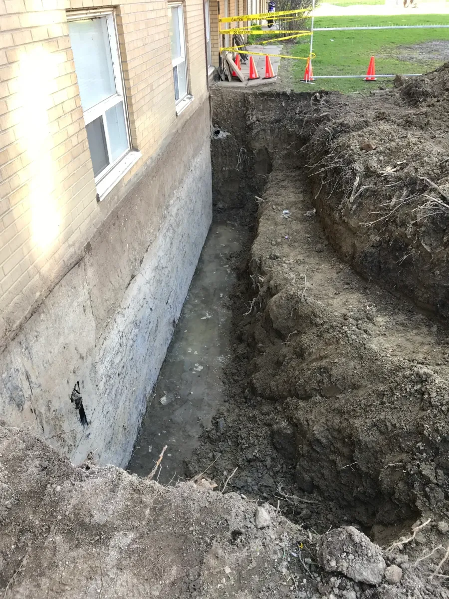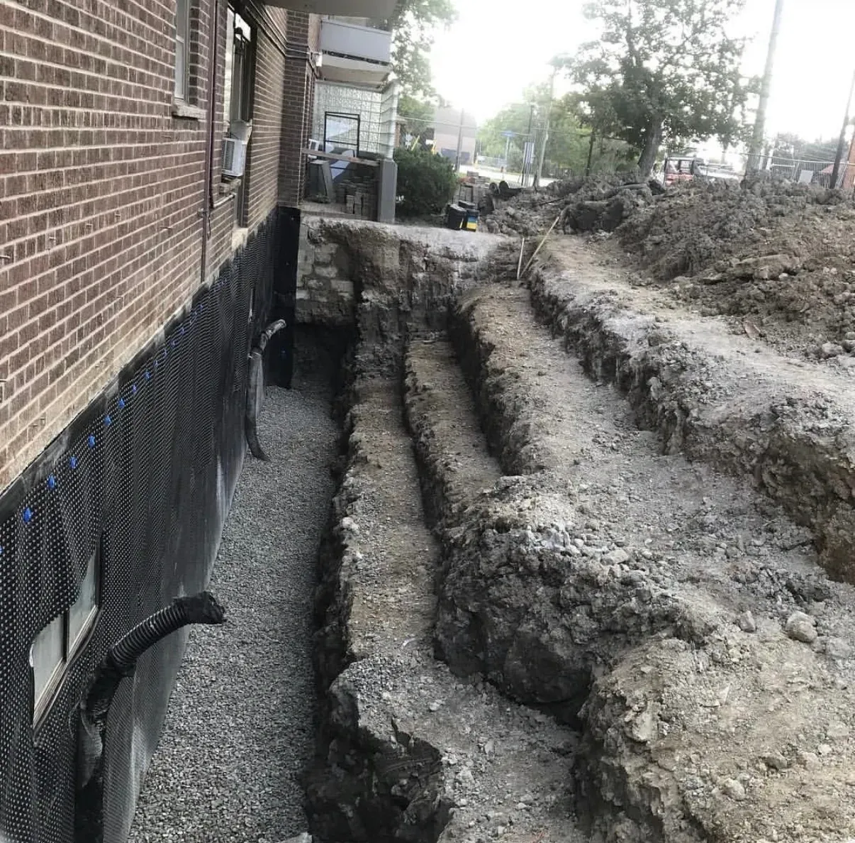 Concrete foundation walls and parking structures are particularly vulnerable, as they remain in constant contact with soil and humidity. Over time, hydrostatic pressure — caused by water buildup in the surrounding soil — can force moisture through foundation walls and into basements. This often leads to mold growth, reduced air quality, and long-term structural deterioration. Proper foundation waterproofing is therefore essential to protect both the building and its occupants.