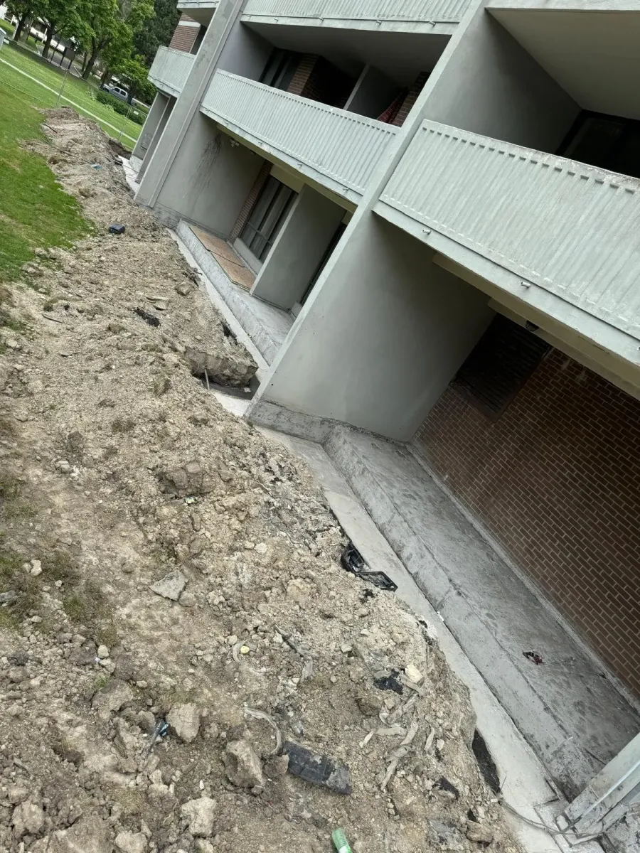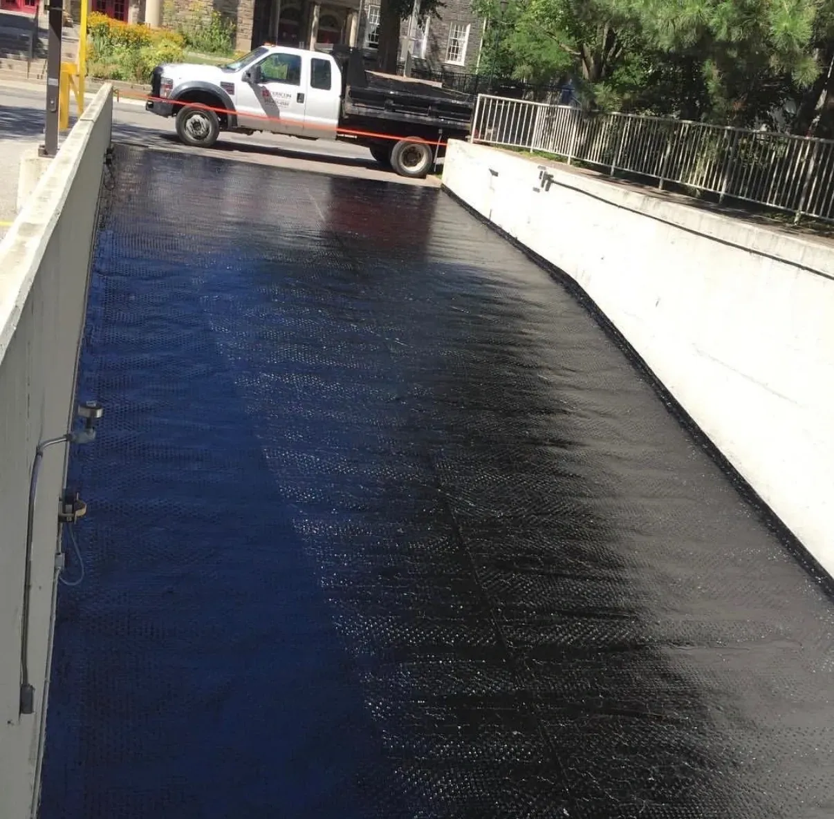 Exposed concrete surfaces such as parking garage decks, balconies, terraces, and rooftops are subject to continuous water exposure, freeze-thaw cycles, and de-icing salts. Waterproofing membranes on these surfaces have a defined service life, and failure to replace them in a timely manner can lead to concrete delamination, structural deterioration, and costly repairs.